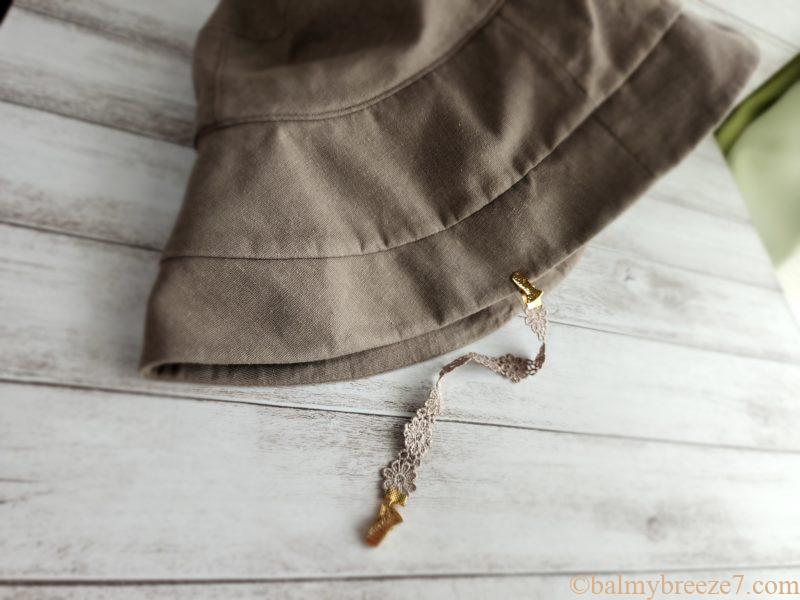 ★フリルが大人可愛いリネンのサンバイザー。付属のあご紐を100均のハットクリップに付け替えるだけで雰囲気がアップ!!